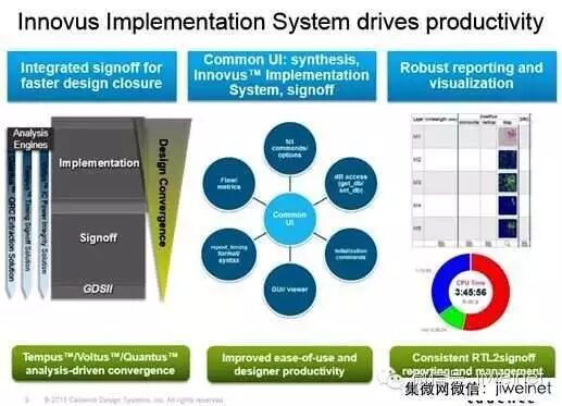 Cadence在今年上半年推出了Innovus设计实现系统,称其为新一代的实体设计实现解决方案,使系统开发人员能够在先进的16/14/10奈米FinFET制程以及其他成熟的制程节点上交付较佳功耗、性能和面积(PPA)指标的设计。